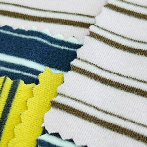 秋冬のドイツベルベットクラシックストライプニット生地、人気のストライプ暖かいベースレイヤー、発熱起毛弾性ソフト生地
