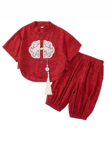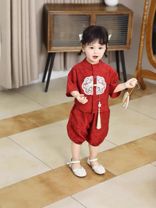 赤ちゃんの中国式の2つのセットの新しい男の子の唐服の女の子の夏服のスーツの夏の国風の半袖の漢服の子供
