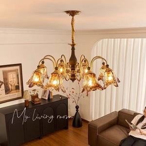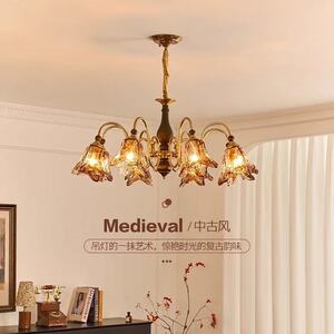 フランス中世のリビングルームのシャンデリア 2025 新しいメイラード宋代の美的レトロな無垢材のマスターベッドルームとダイニングルームの照明