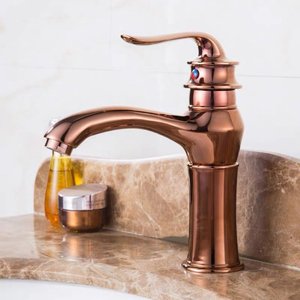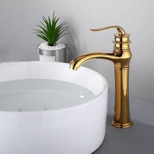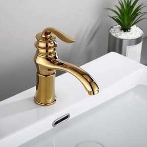 全銅製のゴールデン洗面台の蛇口、洗面台の蛇口、アンティークのヨーロピアンスタイルのカウンター洗面台、温冷洗面台