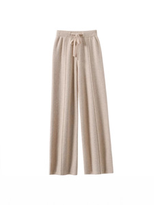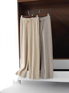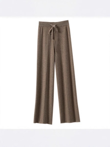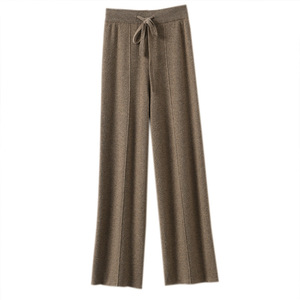 ハイウエストスリムドレープストレートワイドレッグパンツ女性用秋冬新作カジュアル多用途暖かいフロアレングスニットロングパンツ