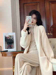 2025 秋と冬の新しいニットカーディガン女性のコートルーズベルトロングセーターコート怠惰なスタイルの女性