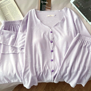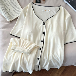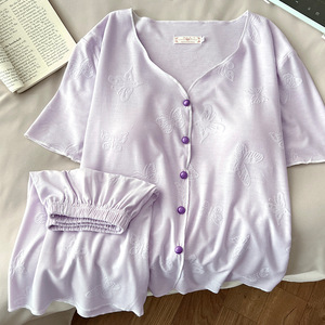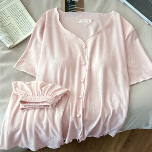 高級モーダルパジャマ レディース 3点セット 胸パッド付き 夏 Vネック 蝶エンボス スイートホームウェアセット