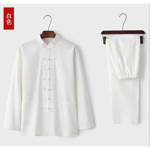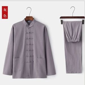 中国風の紳士服唐スーツ男性若者長袖リネンスーツ中国風のレトロな綿とリネンの禅服在家服茶服