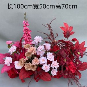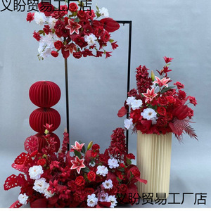婚庆地排花红色中式订婚宴布置婚礼堂舞台路引花婚庆绢花排仿真花