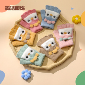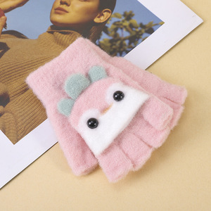 子供用手袋 秋冬 男女兼用 厚くて暖かい 指なし手袋 小学生用 ハーフフィンガーフリップニット