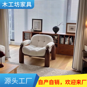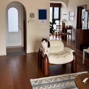 ソファチェア、アンティークスタイル、B&Bファブリック、レイジーソファチェア、デザイナーモデル、シングルシェルパ無垢材ソファ
