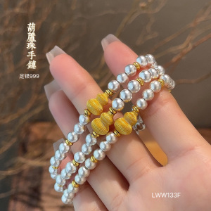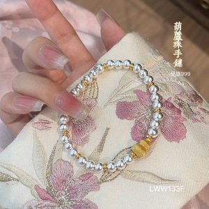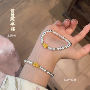 Fushirofu シルバー 999 ブラッシュひょうたんビーズブレスレット女性用古代スターリングシルバーブレスレットファッショナブルでハイエンドの中国風ギフト