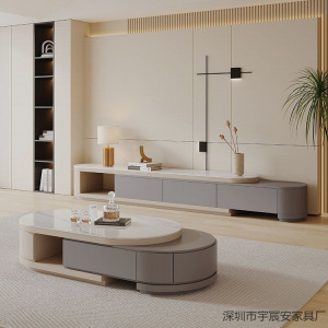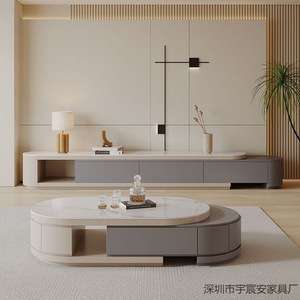 ライトラグジュアリークリームスタイル伸縮式スレートコーヒーテーブルテレビキャビネット一体型モダンシンプルリビングルームホームサイズコーヒーテーブル