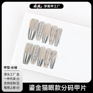 [Jiaolong] 夏ハイフレンチシルバーキャットアイプリントウェアラブルネイル新製品優しく美白ヨーロピアンスタイルマニキュア