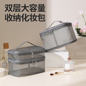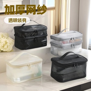 携帯ハンドバッグ化粧バッグ2025新型高級感透明大容量パーテーションメッシュ収納バッグ洗面バッグ