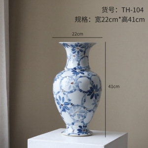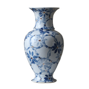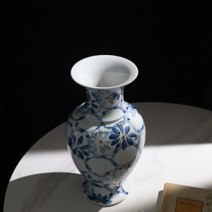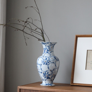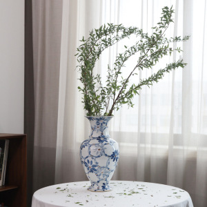 新しい中国風のセラミック花瓶、書斎のデスクトップフラワーアレンジメント、水耕栽培可能な棚、カウンター装飾、青と白の磁器の花器