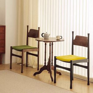 デザイナー中古カラフルでかわいい丸椅子、丸くてシンプルな会議椅子、クリーム色の小さな背もたれ付き無垢材のダイニングチェア
