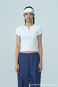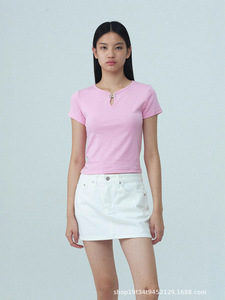 韓国版 RR モーダル中空半袖スリム T シャツ 2025 夏の新しいスタイル小柄な痩身スタイル RR ボタン