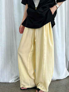 鹿西弛緩感高腰広脚カジュアルパンツ女性夏の新型怠惰な風がゆるんで痩せた鎌パンツ1891