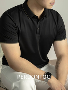 ライトラグジュアリーアイスフィールマルベリーシルク半袖Tシャツメンズ2025夏ハイエンドストレッチビジネスカジュアル抗菌ポロシャツ