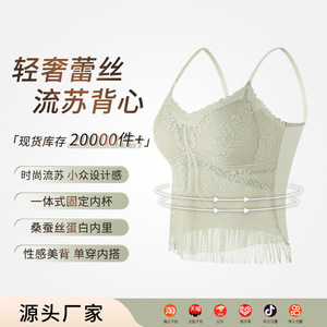 新しいスタイルのタッセル春夏スリムフィットレースキャミソールレディースショートスタイルはブラジャーなしで着用できます