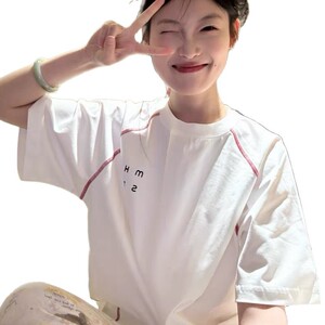 アメリカのトレンディなブランドレタープリント純綿半袖Tシャツ女性用2025年夏新作ゆったり学生半袖ニッチトップ