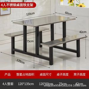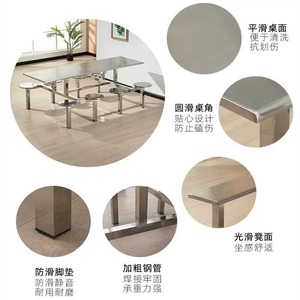 ステンレス製ダイニングテーブル 学校食堂 一体型ダイニングテーブルと椅子 従業員食堂 4人用 6人用 8人用 ファーストフードテーブルと椅子の組み合わせ