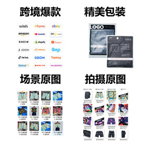 【クロスボーダー専用】PSD同モデル男性ファッション個性落書き速乾運動平角四角下着TEMU