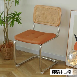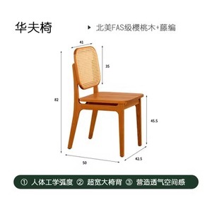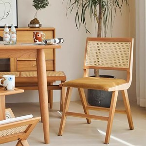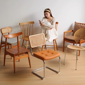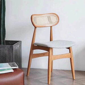 侘寂风椅子轻奢实木藤编餐椅北欧中古ins家用简约现代靠背贝壳椅