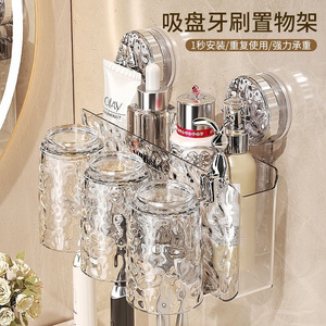 吸盘式牙刷架壁挂免打孔高颜值卫生间挤牙膏牙杯牙具家庭套装