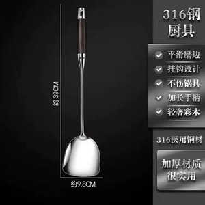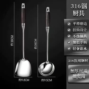 316ステンレス鍋シャベルセット炒め物シャベル調理器具家庭用炒め物スプーン木柄スプーン漏れスプーン厚さシャベル