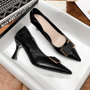 女性用ポインテッドトゥハイヒール、スティレットヒール、2025年春秋の新しいスタイル、フランス風通勤浅口靴、ハイヒール、足が疲れにくい