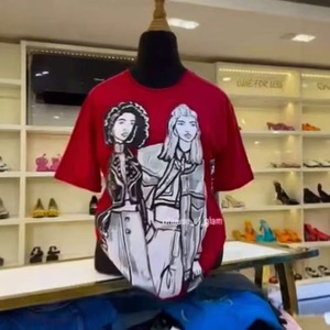 欧米風貿易柄プリント半袖男女兼用2025年Tシャツカジュアルゆったり厚手純綿トレンドプリント