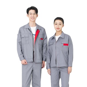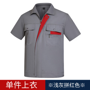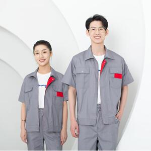 ポリエステルと綿のライトグレーとレッドの半袖スーツ