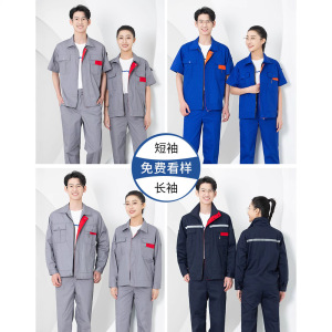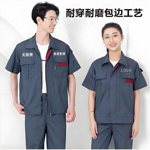 半袖作業服、夏用薄手労働保護服、耐摩耗性、耐汚れ性、プリント刺繍、カスタム長袖男性作業服スーツ