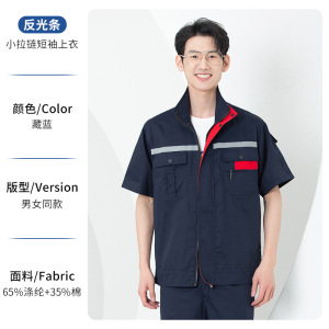 #ピュアコットン半袖ネイビーブルー反射スーツ#