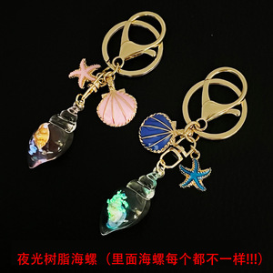 国境を越えた新しいホットセールクリエイティブなパーソナライズされた海辺の休暇発光巻貝キーホルダーアクリルカーバッグペンダント