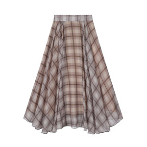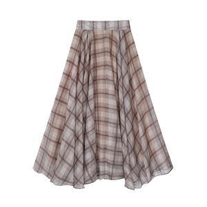 ミドル丈チェック柄スカート 夏韓国風通勤気質ゆったりAラインチュールスカート