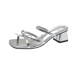 高跟鞋女外穿2025夏季新款百搭小众法式时尚蝴蝶结粗跟拖鞋女凉鞋