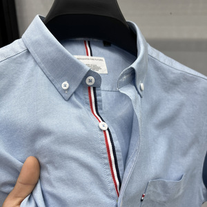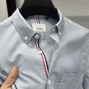 2025 夏半袖シャツメンズビジネスカジュアルオックスフォード織り綿ポケットノンアイロンラペルシャツ新スタイル