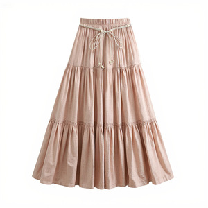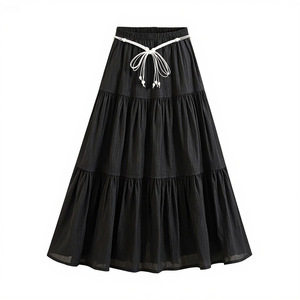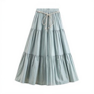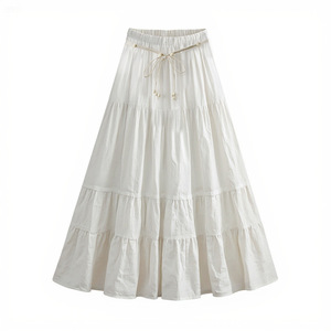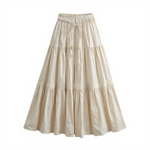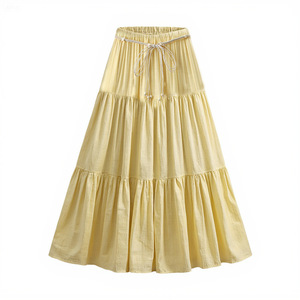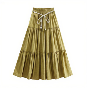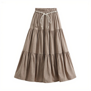 和風綿とリネンのスプライシングケーキスカート無地弾性ウエスト漢要素ロングスカート夏通気性痩身スカート女性のための