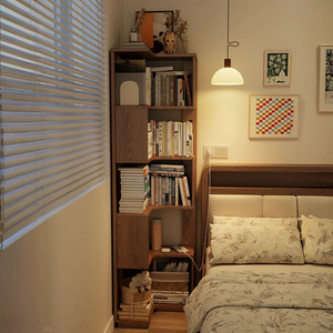ホームコーナー本棚寝室ライト高級ベッドサイドキャビネットコーナー収納ラック一体型壁床本棚コーナーキャビネット