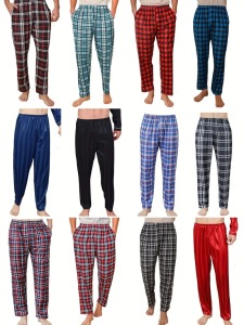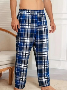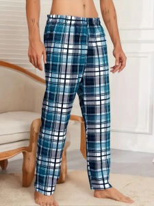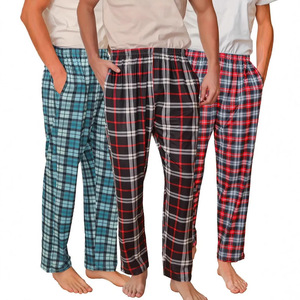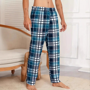 2025跨境新款仿棉睡裤春秋款休闲格子长裤男女宽松直筒家居裤