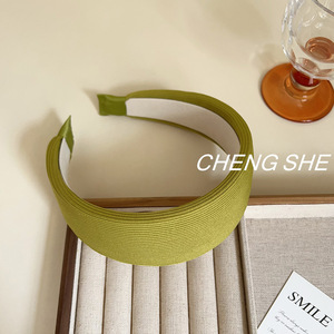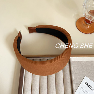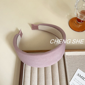 モランディ無地縦ストライプつば広ヘッドバンド、女性用、日常着ヘアバンド、気質、高頭蓋、非伸縮性ヘッドバンド