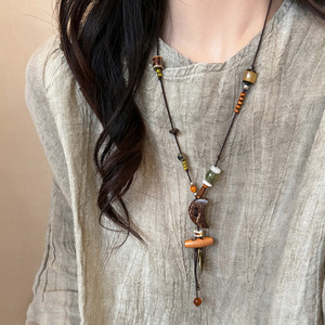 新しい中国風のレトロな三日月天然石ネックレス女性のエスニックスタイルスマイリーフェイスロングセーターチェーンニッチデザインアクセサリー