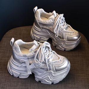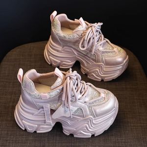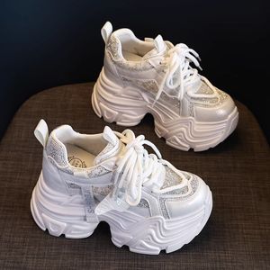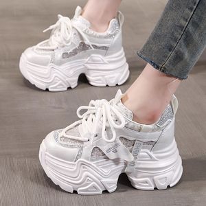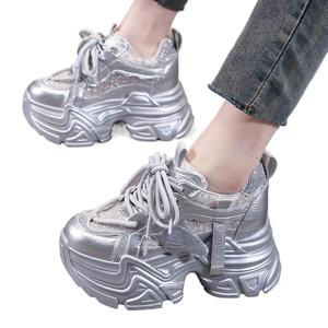 プラットフォーム新しい厚底メッシュラインストーンインナーパパレディースモデル 2025 夏通気性薄型ハイヒール
