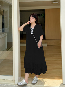 二日間の25年夏の新型の大きいサイズの女装の太った妹のファッションの百合はレースのワンピースの8918をつなぎ合わせます。