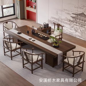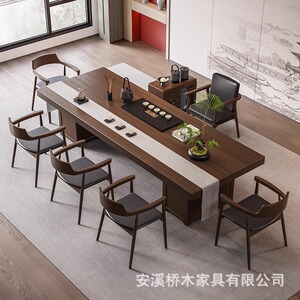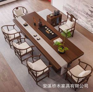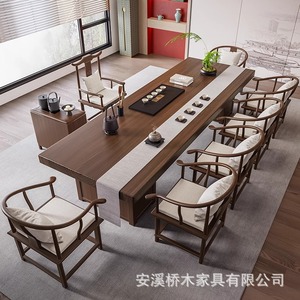 新しい中国風のティーテーブルオフィスホームコーヒーテーブルモダンシンプルな無垢材大型ボードティーテーブルリビングルームティーテーブルと椅子の組み合わせ