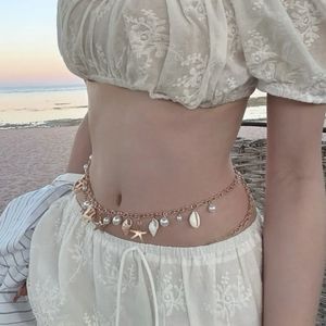 ボヘミアンサマービーチシェルウエストチェーン海辺旅行模造真珠ヒトデ巻貝ペンダントボディチェーンヨーロッパとアメリカ