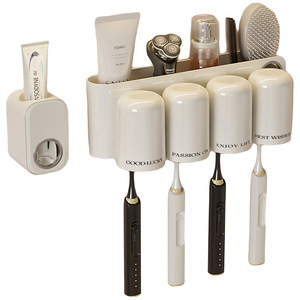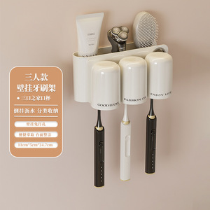 歯ブラシラック収納ラックパンチフリー壁掛け浴室電動歯ブラシカップマウスウォッシュカップ壁掛けファミリーセット