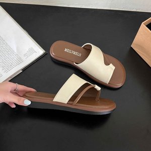 フレンチスタイルのアウターウェアスリッパ女性のための 2025 夏の新しいファッションカジュアルスカート付きフラットビーチサンダル