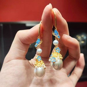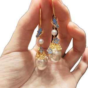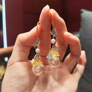 新しい中国風模造翡翠フィリグリー象嵌真珠のイヤリング女性のレトロな宮殿スタイルのタッセルイヤリングチャイナドレスと漢服のイヤリング