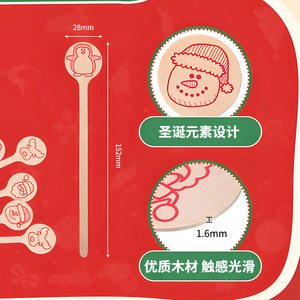 クリスマスの使い捨て木製コーヒー棒は国境を越えたカラー印刷ロゴ円形攪拌棒メーカー卸売りを厚くした