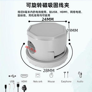 マグネット式回転ベースハブ固定器デスクトップ車載データライン電源コード収納クリップ